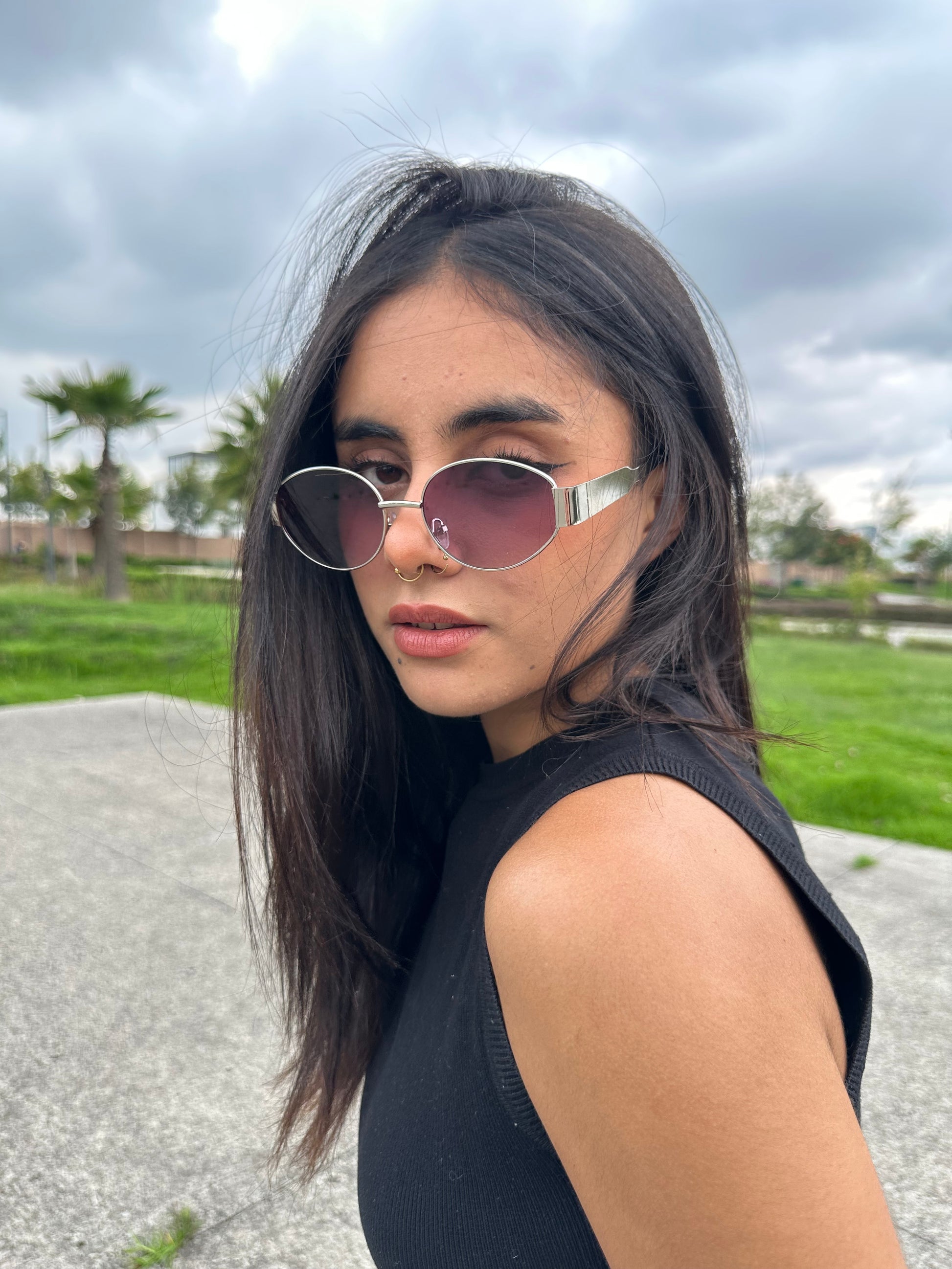 Lentes polarizados reducen el deslumbramiento al bloquear reflejos de superficies como agua o asfalto. Mejoran la claridad visual, el contraste y protegen los ojos del daño solar, siendo ideales para actividades al aire libre y conducción, disponibles en morado con armazón metálico plateado de alta calidad.