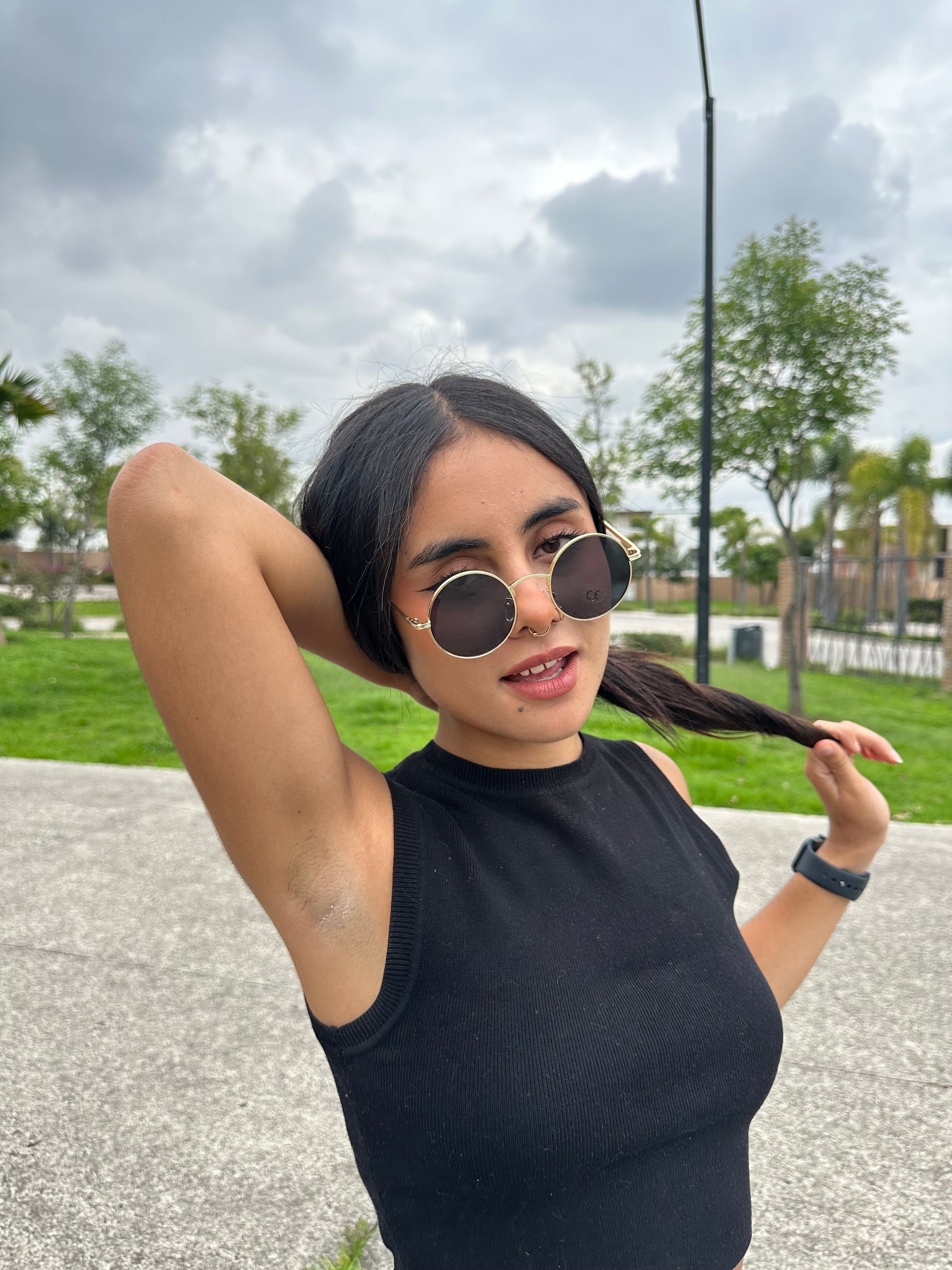 Lentes polarizados reducen el deslumbramiento al bloquear reflejos de superficies como agua o asfalto. Mejoran la claridad visual, el contraste y protegen los ojos del daño solar, siendo ideales para actividades al aire libre y conducción, disponibles en negro con armazón dorado metálico premium.
